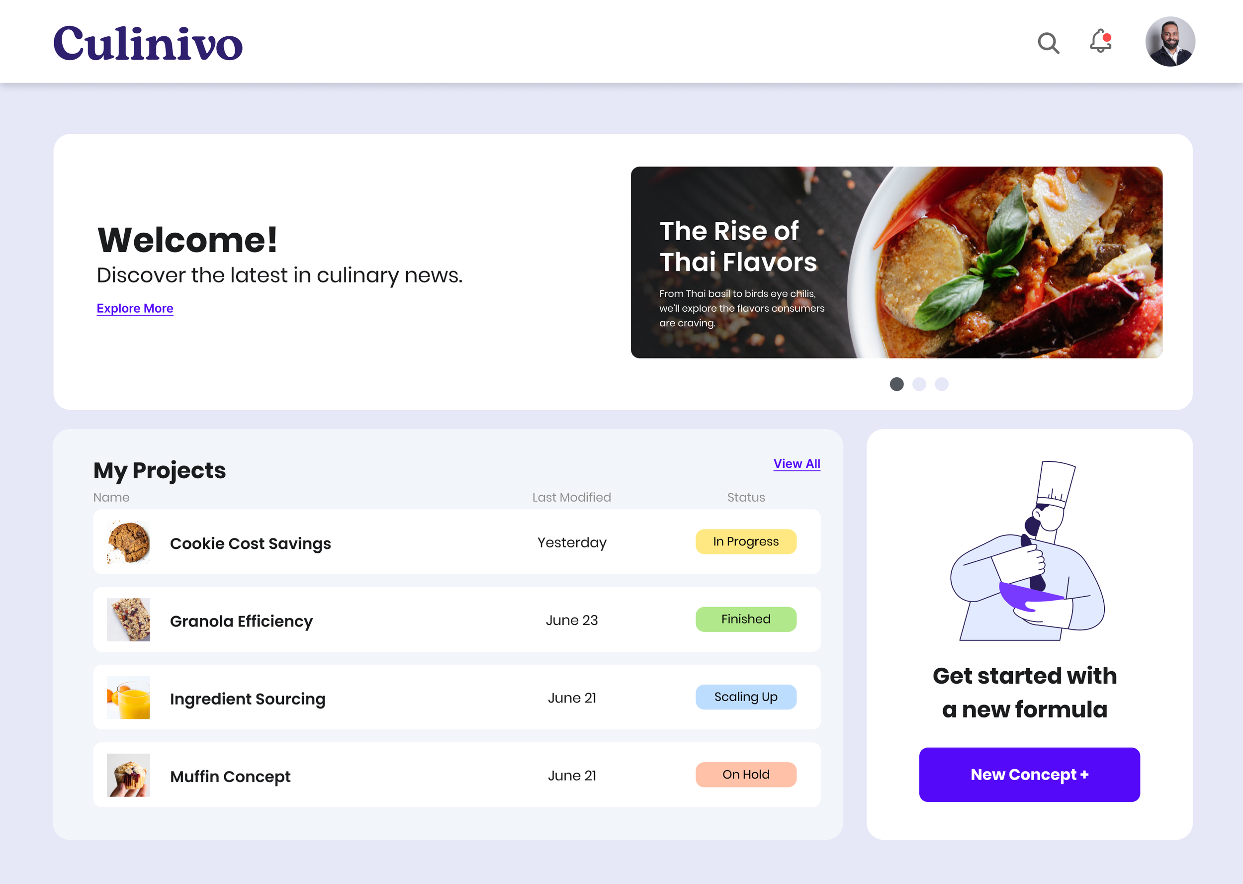 Culinivo is software application idea that can speed up time to market, support innovation, and provide access to valuable information during the concept and formulation processes for food product developers.